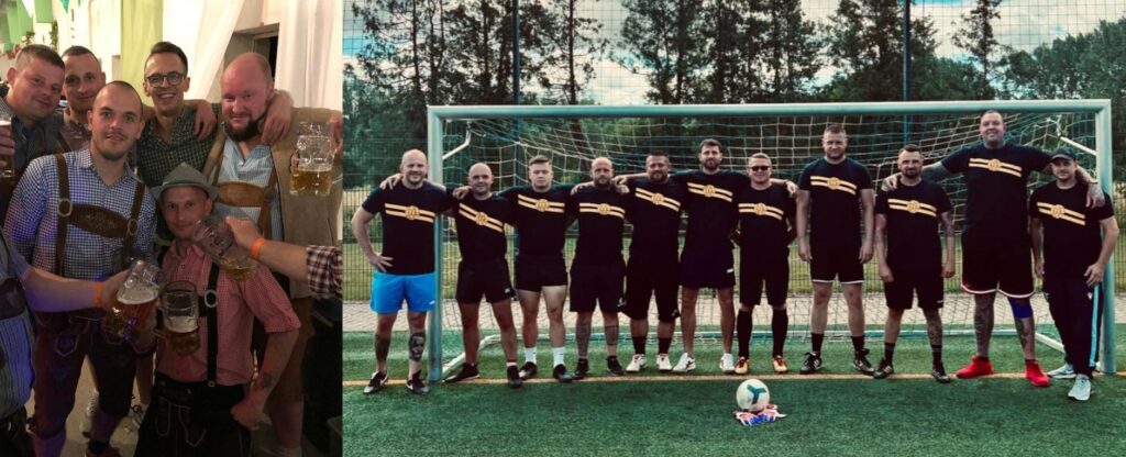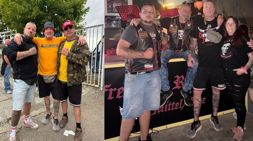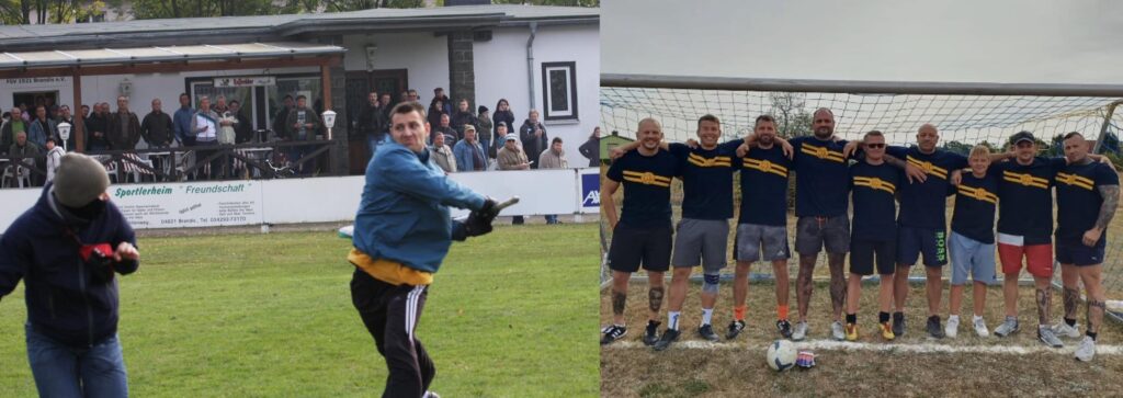 Kühnel ist nicht der einzige Neonazi mit dem sich Nico Becker umgibt. Ein Oktoberfest besuchte Becker 2018 unter anderem mit dem ehemaligen Wurzener IFT-Kämpfer Marcel Bennewitz, der in der Vergangenheit das rechte Kleidungslabel „heimatliebend“ betrieb. Auch Bennewitz ist fester Bestandteil der neonazistischen Fanszene und dribbelte für diese unter anderem bei einem internen „Hooligan-Turnier“ 2024 gemeinsam mit – wie sollte es anders sein – Peter Kühnel für die blau-gelben Farben auf. Bei dem besagten Oktoberfest 2018 war auch der Bornaer Stephan Geidl dabei: Lok-Fan, Connewitz-Angreifer und Teil der Reisegruppe, die 2022 im Rahmen des Länderspiels England-Deutschland einen Londoner Pub überfiel.