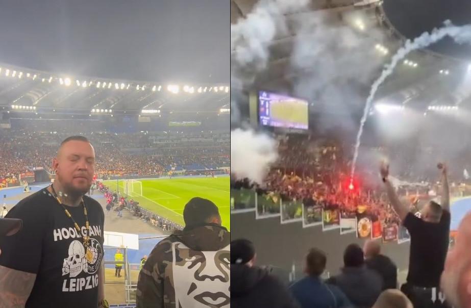 Insbesondere die Freundschaft in extrem rechte Fankreise von Lazio Rom wird durch Besuche bei Derbys in der italienischen Hauptstadt gepflegt. Im November 2023 reiste eine knapp 15 Personen starke Gruppe aus Leipzig nach Rom. Nach absolviertem Sightseeing in der Vatikanstadt positionierten sich die Leipziger Neonazis beim abendlichen Derby in größtmöglicher Nähe zum Block der AS Rom-Fans und mischten im gegenseitigen Beschuss mit Pyrotechnik fleißig mit. Ganz vorne dabei war einmal mehr Thomas Kuhbach. Er trug währenddessen ein T-Shirt mit dem Logo vom 1. FC Lokomotive Leipzig, einem der „SS-Division Totenkopf“ nachempfundenen Totenschädel sowie dem Schriftzug „HooliganS Leipzig“.