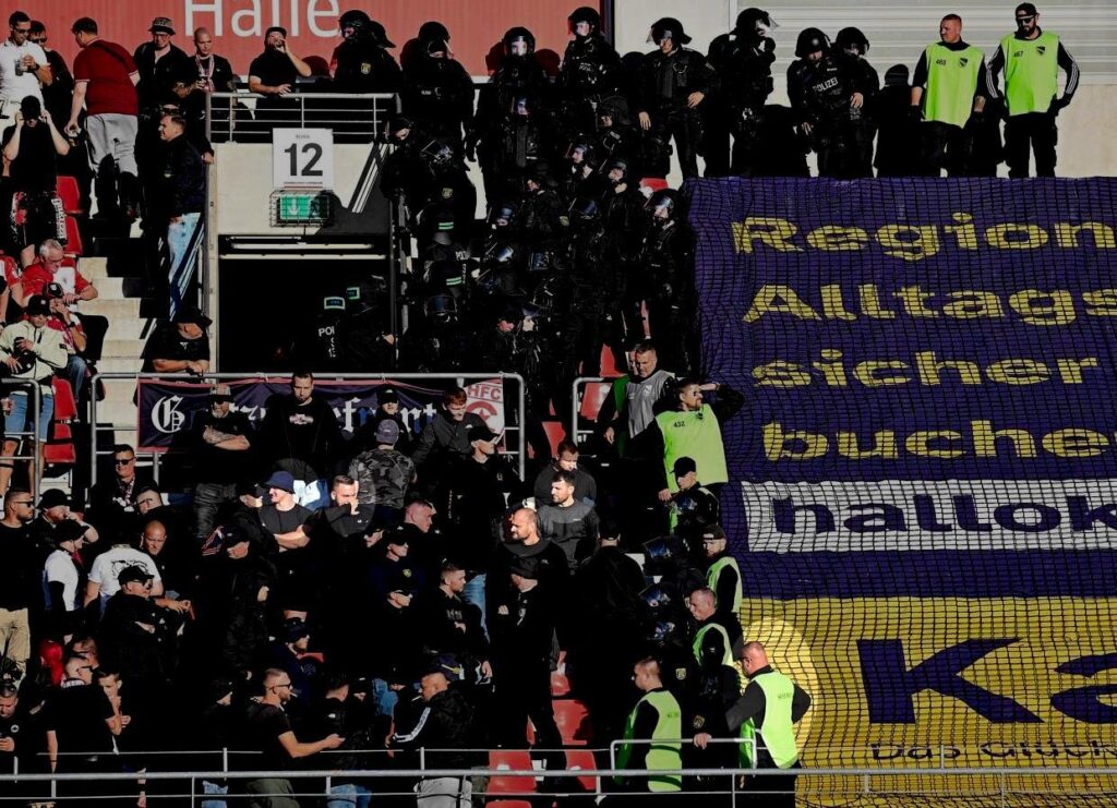 Gemeinsam mit seinen Neonazi-Freunden besuchte Fritzsch kürzlich außerdem das bereits benannten Spiel vom Halleschen FC gegen die BSG Chemie Leipzig, bei dem Fans das Spielfeld stürmten und Spieler der BSG Chemie Leipzig bedrohten und angriffen.