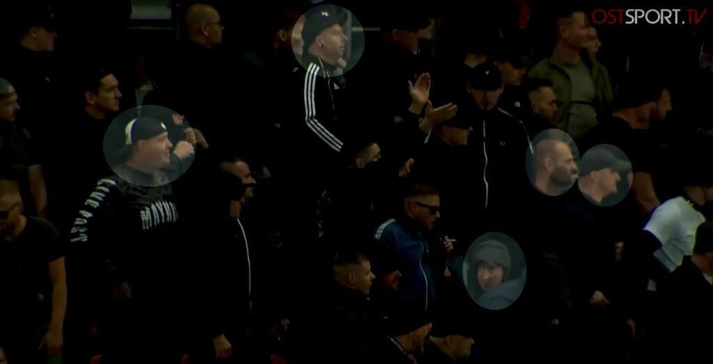 In dem Bereich hinter Tor 1 aus dem Antwi-Adjei beleidigt wurde, stünden „Nostalgiker oder Abgehängte“, wie die LVZ zu berichten weiß. Betrachtet man das bestehende Bildmaterial, das zum Teil auch im besagten LVZ-Artikel selbst verwendet wird, stechen allerdings unmittelbar Personen ins Auge, die in Bezug auf die Fanszene von Lok Leipzig keineswegs als „Abgehängte“ gelten können. So tummeln sich darauf neonazistische Lok-Fans, die bis in die Gegenwart relevanten Einfluss in der Fanszene besitzen und in der Vergangenheit unter anderem in der neonazistischen Ultra-Gruppe „Scenario Lok“ organisiert waren. Folgend seien einige der auf den Bildern zu sehenden Neonazis benannt.