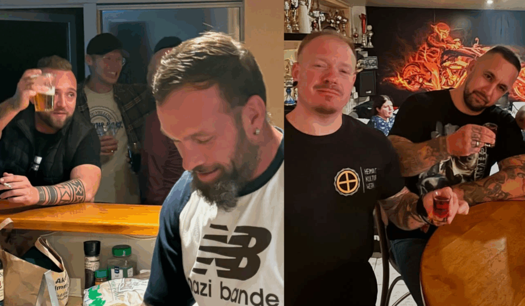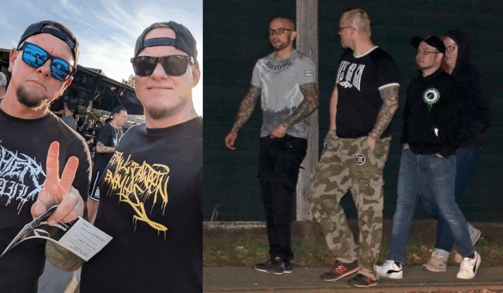 Andere, die ebenfalls den „Autonomen Nationalisten“ entstammen und regelmäßig auf ostdeutschen Hardcore-Shows auftauchen, sind Christopher Klein und Marcus Wendt aus Südthüringen. Beide besuchten erst im Juni 2025 ein Konzert der US-Hardcore-Band „Terror“ im „Bandhaus“ in Erfurt. Wenig später waren sie Teilnehmer eines Konzerts der antifaschistischen Metalcore-Band „Heaven Shall Burn“ im Schützenhaus in Themar. Für ein Foto posierten sie dort hämisch vor einem antirassistischen Banner. Offenbar wurden sie vor Ort nicht als Neonazis erkannt. Erst kürzlich bewarb Klein in den sozialen Netzwerken außerdem ein Hardcore-Konzert u.a. mit „Passed Out“, „Wrecked Culture“ und „Words of Concrete“, das im November 2025 im Schützenhaus in Themar stattfinden wird.
